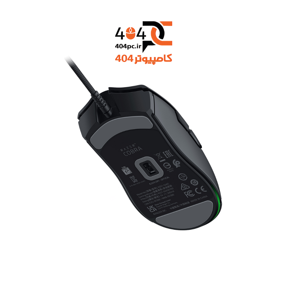 ماوس ریزر COBRA محصولی است که از همان نگاه اول حس حرفه‌ای بودن را منتقل می‌کند. با وزن تنها ۵۸ گرم و ابعاد جمع‌وجور ۱۲۰x۶۲.۵x۳۸.۱ میلی‌متر، این ماوس سبک و راحت در دست جای می‌گیرد و حرکات سریع و دقیق را به راحتی ممکن می‌کند. سبک بودن ماوس به ویژه در بازی‌های رقابتی اهمیت بالایی دارد، زیرا هر حرکت کوچک دست می‌تواند تفاوت بین برد و باخت را رقم بزند. شش کلید قابل برنامه‌ریزی روی بدنه امکان شخصی‌سازی دستورات و میانبرها را فراهم می‌کنند و تجربه‌ای انعطاف‌پذیر برای کاربر ایجاد می‌کنند. کلید اختصاصی تغییر DPI نیز کمک می‌کند حساسیت ماوس در لحظه تنظیم شود و سرعت یا دقت حرکات دست با نیازهای بازی هماهنگ باشد. این ویژگی به گیمر اجازه می‌دهد بدون توقف بازی، کنترل کامل روی حرکات خود داشته باشد. حسگر اپتیکال COBRA با دقت ۸۵۰۰ DPI و نرخ نمونه‌برداری ۱۰۰۰ هرتز حرکات را دقیق و روان دنبال می‌کند و با حداکثر سرعت ۳۰۰ IPS و شتاب ۳۵ G، تجربه‌ای پاسخگو و مطمئن ارائه می‌دهد.